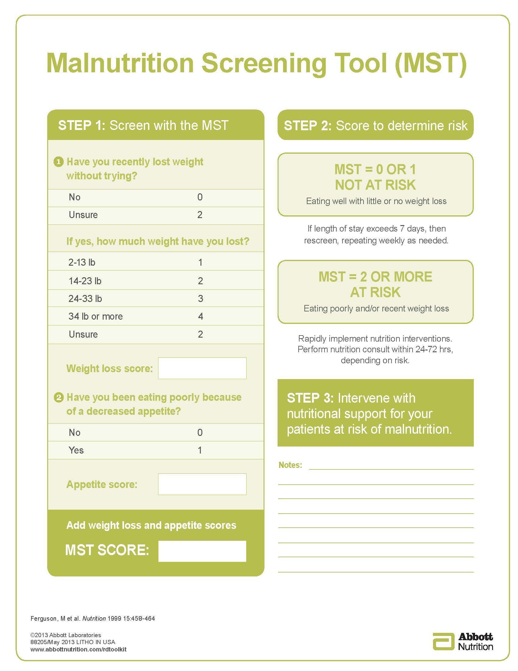 Effective nutritional management is crucial to to maintain good nutritional status or to reverse malnutrition. The first step to stablish appropriate nutrition care plans is the nutrition assessment.