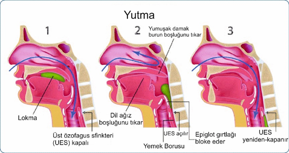 Yutma karmaşık bir süreçtir. Yaklaşık 50 çift kas ve birçok sinir, gıda, içecek, ilaç veya tükürüğü almak, hazırlamak ve ağızdan mideye taşımak için çalışmaktadır.
