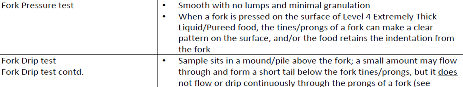 • If the person needs supervision to eat safely, before using this texture level consult a qualified clinician to determine the person’s food texture needs, and meal time plan for safety