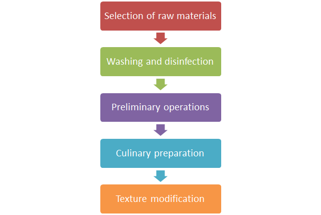 It is necessary to establish protocols for the elaboration and adaptation of the texture of the different dishes. There is no standardized protocol, but the following stages are recommended: