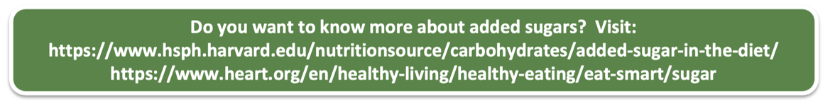 • Απλοί υδατάνθρακες - Σάκχαρα: Πέπτονται και απορροφώνται γρήγορα στο λεπτό έντερο του ανθρώπου. Τα τρόφιμα που περιέχουν σάκχαρα έχουν την τάση να έχουν υψηλότερο γλυκαιμικό δείκτη. Οι ποσότητες των σακχάρων πρέπει να είναι χαμηλές και κατά προτίμηση να προέρχονται από τρόφιμα με υψηλή διατροφική πυκνότητα - π.χ. φρούτα και smoothies φρούτων.