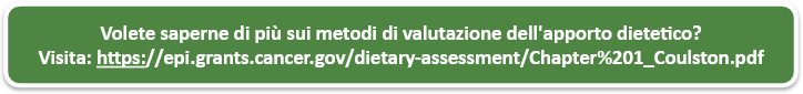 Fornisce informazioni sulla quantità e sulla qualità della dieta e i risultati vengono confrontati con le assunzioni raccomandate.