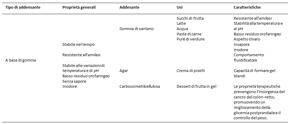 Tabella 4. Addensanti a base di gomma. Caratteristiche ed esempi di utilizzo (adattato da Giura et al., 2021).