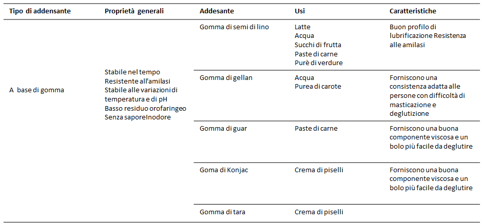 Di seguito vengono presentate le principali caratteristiche degli addensanti alimentari utilizzati nella disfagia.