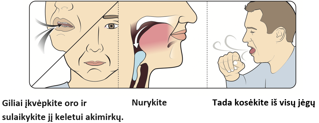 Rijimas atvira burna: Laikydami lūpas praviras, giliai įkvėpkite ir greitai nurykite.