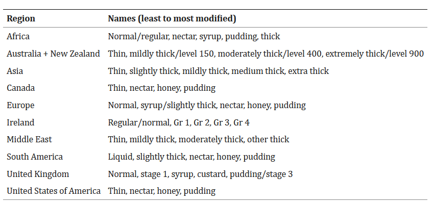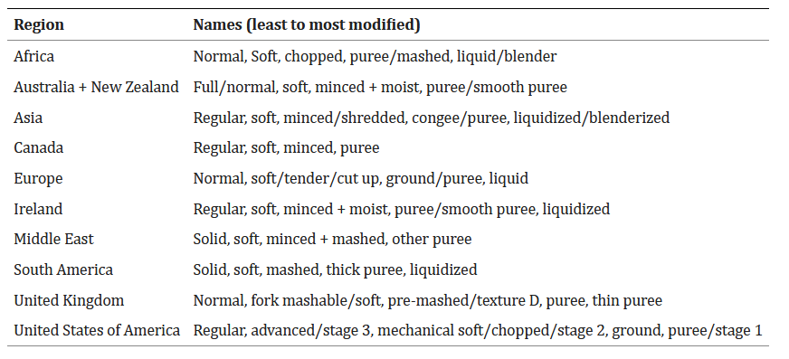 Tinkamos maisto tekstūros ir gėrimų konsistencijos užtikrinimas reiškia, kad reikia naudoti bendrus modifikavimo lygius ir deskriptorius.