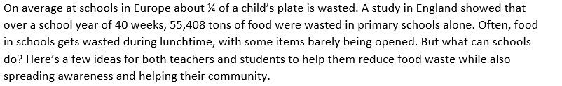 ·        Re-evaluate the school canteen to avoid wasting food: