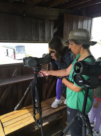 Visita a las salinas del golfo de Kalloni, para observar la flora y la fauna y cartografiar la cadena trófica del humedal. La presentación de la fauna estuvo a cargo de Eleni Galinou, ambientóloga y miembro del Geoparque de.