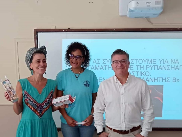 La organización voluntaria "Plastic free", con  Yioula Koutsoubou del Taller de Artesanía Casera visitó nuestra escuela. libre de plástico es un grupo creado por ciudadanos preocupados de sobre la abrumadora crisis del plástico en nuestras playas, mares y tierra.