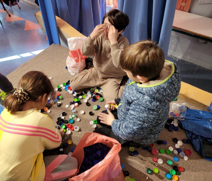 Primero, hubo una actualización sobre cómo el planeta y el medio ambiente están agobiados por el uso de plásticos. Luego, los estudiantes hicieron una pequeña billetera con cajas de papel que habían traído de casa.