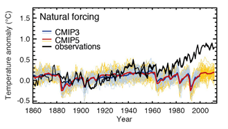 Premièrement, l'évolution des températures actuelles ne peut être expliquée qu'en tenant compte des causes naturelles et anthropiques. Deuxièmement, la part du réchauffement liée aux activités humaines est beaucoup plus importante que la part du réchauffement liée au seul forçage naturel. En l'occurrence, sur la période 1951-2010, l'augmentation de la température liée aux activités naturelles est inférieure à +0,1°C alors que l'augmentation attribuée aux activités humaines est comprise entre +0,5 et +1,3°C.