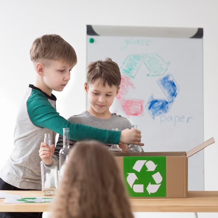 - Des poubelles spécifiques dans la salle de classe pour chaque déchet (plastique, papier et déchets).